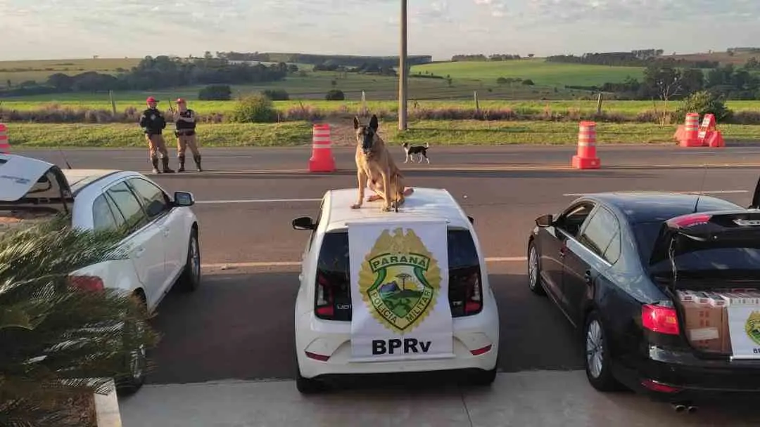 Durante operação Narco Brasil, realizada no último domingo (3) na PR-323 próximo ao município de Perobal, policiais rodoviários abordaram um VW/UP que estava trafegando como batedor de uma carga de cigarros.