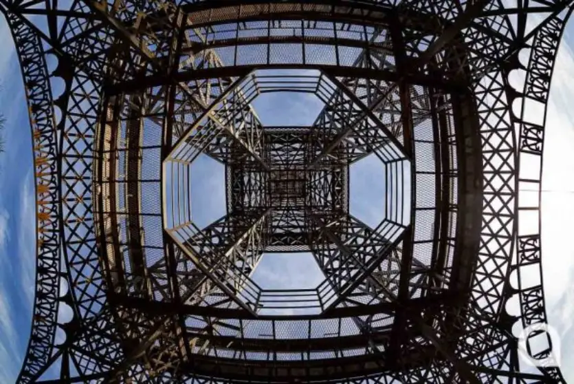 A torre da Estância Paris, nome que deu ao condomínio, levou um ano para ficar pronta. Com 30 toneladas de ferro e fibra de vidro e na cor ouro envelhecido, tem 32 metros de altura [o equivalente a um prédio de onze andares] e 12 de largura na base [suficiente para a passagem de um caminhão entre os quatro pés].