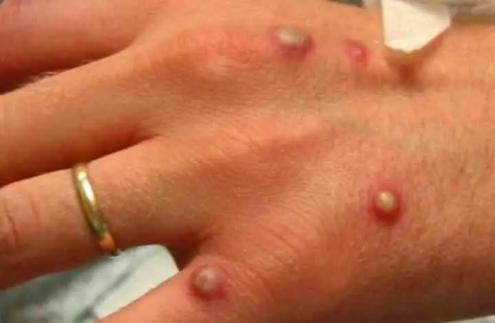 A varíola do macaco é uma doença viral e a transmissão entre humanos ocorre, principalmente, por meio de contato com lesões de pele de pessoas infectadas. A infecção causa erupções que geralmente se desenvolvem pelo rosto e depois se espalham para outras partes do corpo. Os principais sintomas envolvem febre, dor de cabeça, dores musculares, dores nas costas, linfadenopatia, calafrios e fadiga.