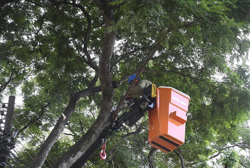 O serviço compreende a remoção de árvores condenadas, das mais variadas espécies, ou poda para manutenção da copa, especialmente nos casos em que os galhos avançam sobre imóveis ou prejudicam o tráfego de veículos mais altos.