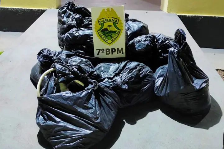 Com as informações em mão, os policiais conseguiram realizar a abordagem do veículo, que em seu interior possuía cinco sacos, quatro destes com pacotes de frango e outro com a fiação.