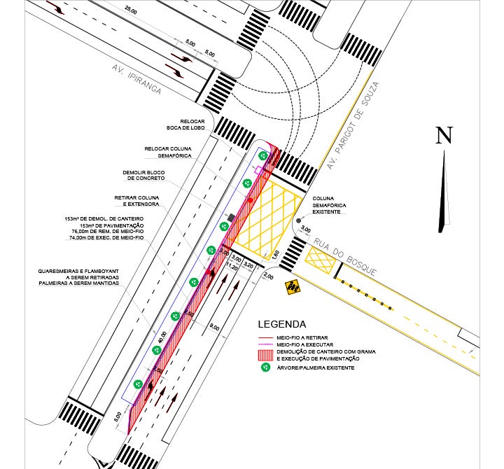 O secretário de Obras, Gleison Alves de Andrade, adianta que a pista de rolagem ficará com 11,2 metros. “A nova pista, especial para quem quer virar para a esquerda e entrar na avenida Ipiranga (sentido rodoviária velha), terá cinco metros. Vamos executar a relocação de bocas de lobo, das colunas semafóricas e executar nova pavimentação, modernizando o local e contribuindo para a fluidez e a segurança do trânsito”, pontuou.