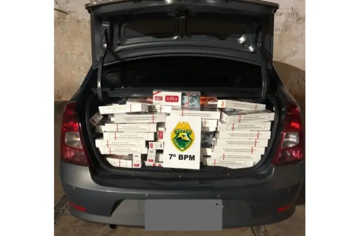 Durante um patrulhamento realizado na noite desta sexta-feira (8) um condutor de automóvel Renault/Logan, de 24 anos, foi preso por contrabandear aproximadamente 26 caixas de cigarros oriundos do Paraguai.