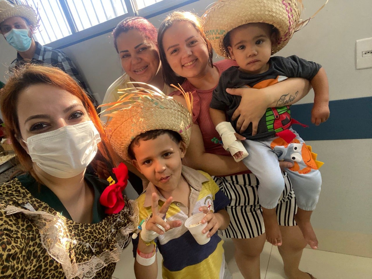 A festança começou no estacionamento para todos os colaboradores e, em seguida, invadiu a Pediatria, levando alegria e momentos de descontração para crianças internadas e suas acompanhantes – mamães e vovós.