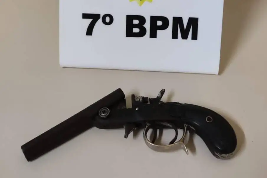 Neste domingo (10), a Polícia Militar (PM) apreendeu uma arma de fogo tipo garrucha calibre .32 que estava em posse de dois suspeitos no aterro sanitário de Mariluz. Segundo informações, os homens fugiram em meio a um matagal e não foram encontrados pela polícia.