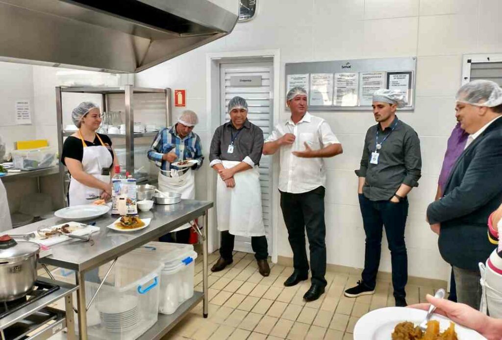O culinarista Lucas Matheus Moreira Rocha, instrutor de gastronomia do Senac, recepcionou empresários do ramo de culinária que irão participar do concurso gastronômico promovido pelo Sebrae, além do secretário de Gabinete e Gestão Integrada, André Rodrigues dos Santos, e do gerente da Agência do Trabalhador de Umuarama, Reginaldo Barros.