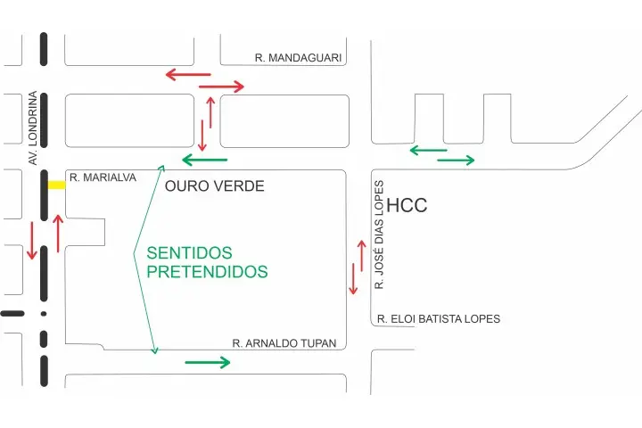 Além da inversão da preferencial no cruzamento das ruas Marialva com José Dias Lopes, já implantada, a Diretoria de Trânsito pretende alterar o sentido da rua Marialva – entre a José Dias Lopes e a avenida Londrina.