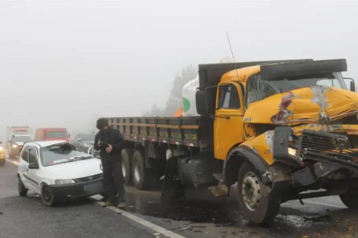 Segundo informações do Corpo de Bombeiros, o acidente aconteceu após o condutor do automóvel perder o controle da direção e colidir contra um dos caminhões e na sequência se chocar contra o outro caminhão.