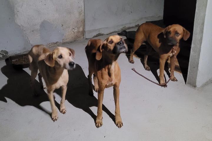 A presidente da Saau, Ana Polaquini, conversou com Obemdito na noite desta quinta-feira (14). Ela explicou que os três cachorros são machos, jovens adultos e em situação de desnutrição. Um deles está com erliquiose (doença do carrapato) em grau avançado e pode ser que não resista.