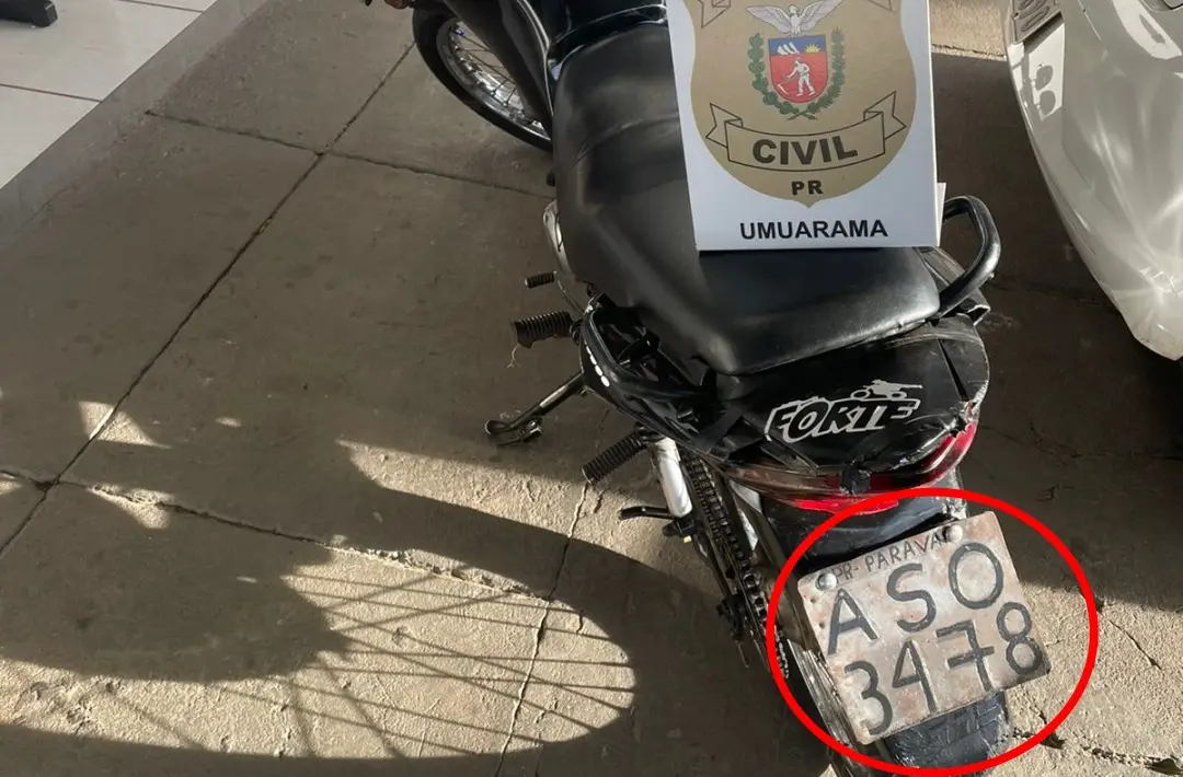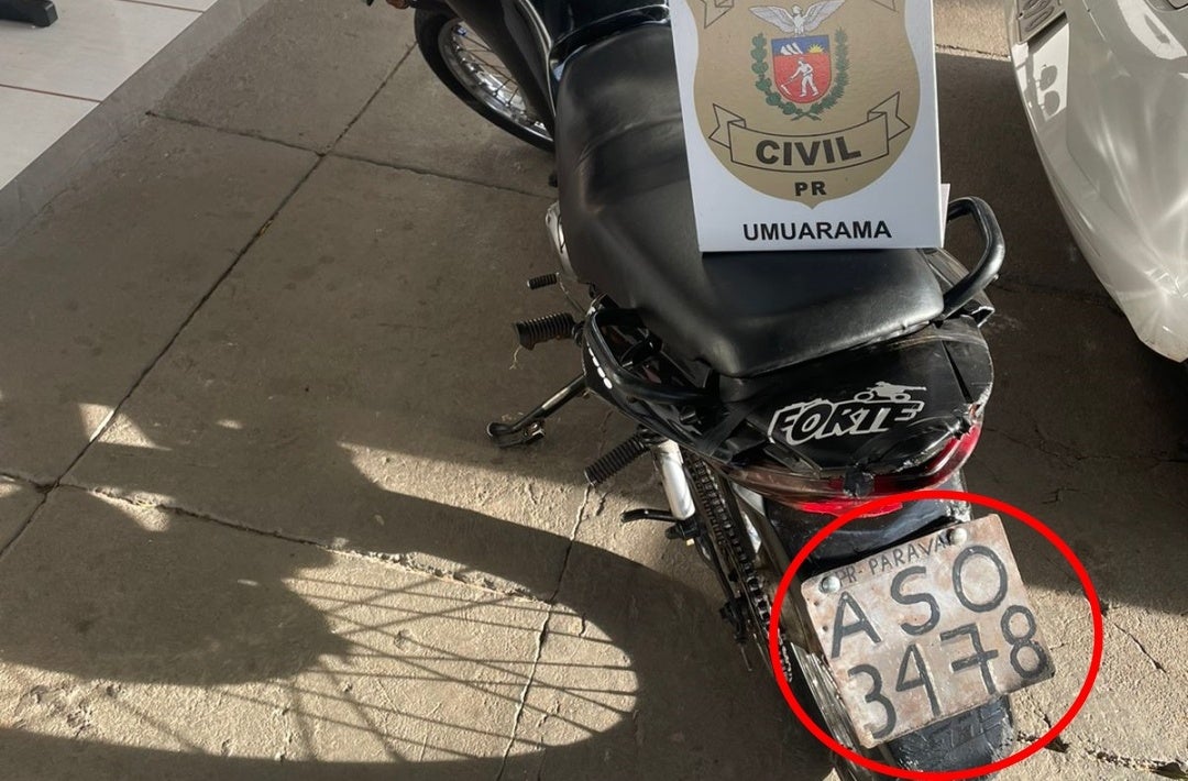 No momento em que os policiais estavam na residência do jovem, um adolescente chegou conduzindo uma motocicleta Honda/CG 125, placas ASO-3478. Quando os policiais verificaram o veículo constataram que a numeração identificadora do motor estava destruída, a moto estava com uma placa artesanal e o nome do município também estava errado – ao invés de Paranavaí, estava escrito “Paravaí”.