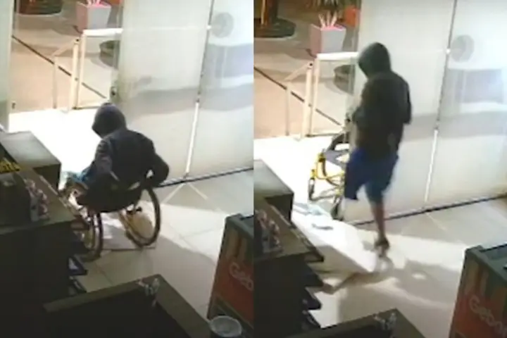 Segundo informações, o proprietário do local recebeu um alerta de que o estabelecimento estava sendo invadido e chegou pelas câmeras de segurança que o cadeirante estava praticando os furtos na conveniência. Ele acionou a Polícia Militar (PM), que rapidamente compareceu ao local e conseguiu prender o suspeito que havia saído recentemente.