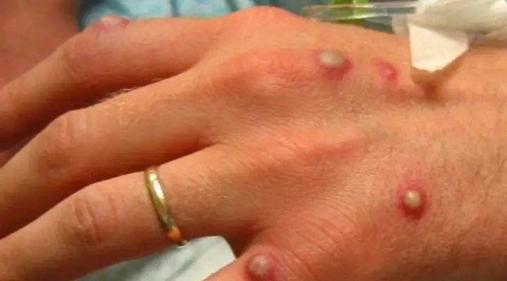 Ele esclarece que a infecção causa erupções que geralmente se desenvolvem pelo rosto e depois se espalham para outras partes do corpo.