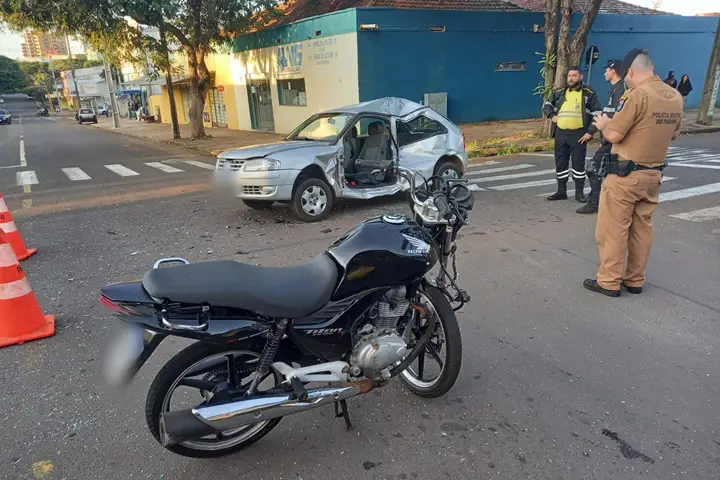 OBemdito esteve no local e apurou que o VW Gol seguia pela rua Arapongas, quando, ao chegar no cruzamento com avenida Pirapó, o condutor da motocicleta acabou cruzando a preferencial do automóvel, resultando na colisão com a lateral do carro, que ficou deformada.