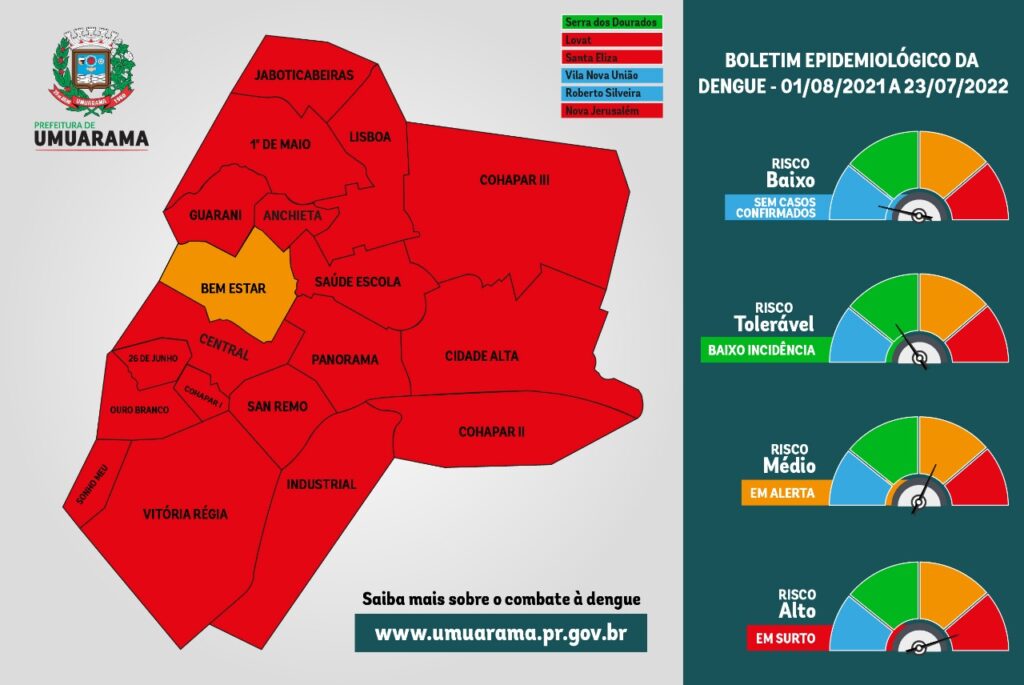 A penúltima semana do ano epidemiológico da dengue, que se encerra no próximo dia 31, confirmou mais 55 casos positivos da doença em Umuarama. Com isso, o acumulado desde agosto do ano passado chega a 1.511.