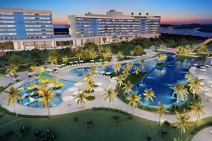 Com um projeto surpreendente, moderno, e em uma paisagem paradisíaca, o complexo reunirá um parque aquático indoor (totalmente coberto e climatizado), hotel resort, bangalôs exclusivos e uma infraestrutura completa de lazer e esporte.