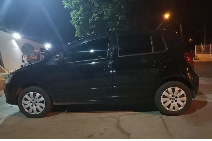 Um dos veículos usados pelas vítimas, que foi recuperado pouco depois do crime (FOTO: 25BPM)