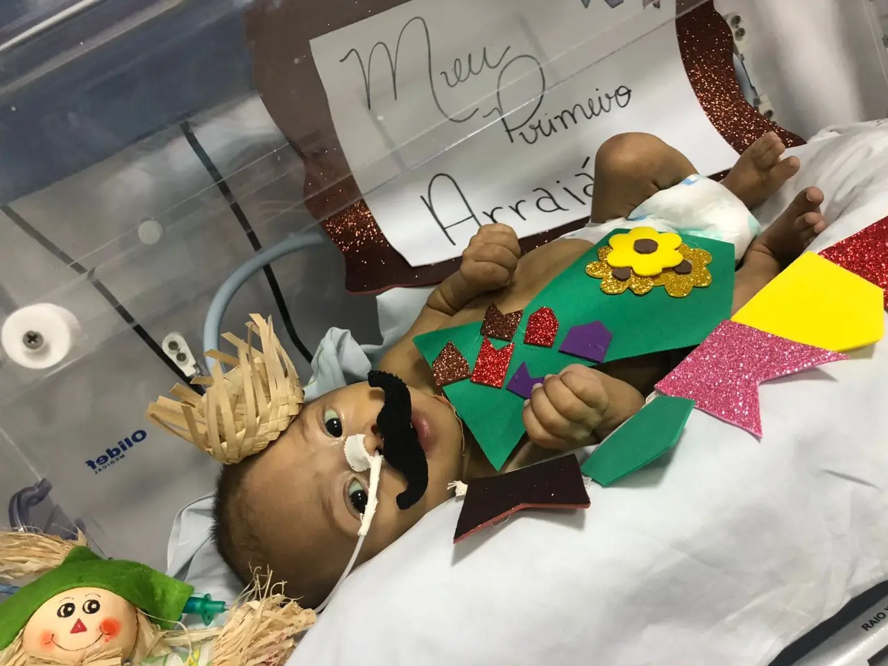 Os bebezinhos internados na UTI Neonatal e Pediátrica da Norospar comemoraram o seu primeiro ‘Arraiá Julino’, nesta semana. A decoração típica e as roupinhas temáticas foram especialmente preparadas pela equipe de enfermagem e surpreenderam mamães, papais e vovós na hora da visita.