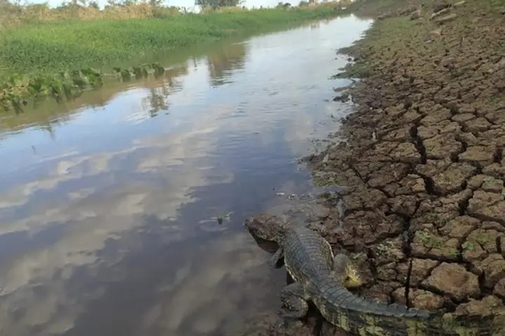 A Polícia Militar Ambiental (PMAmb) foi acionada, na tarde desta segunda-feira (25), para capturar um Jacaré-do-Papo-Amarelo (Caiman latirostris), que deu um baita susto em funcionários de um motel em Miranda, no Mato Grosso do Sul, ao ser flagrado vagando pelo interior do estabelecimento.