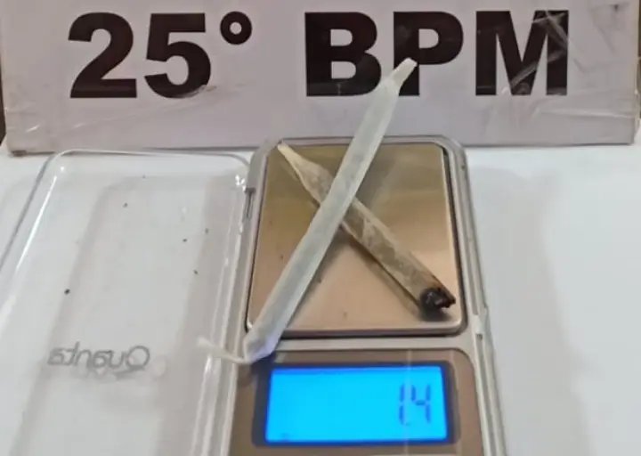 Os PMs o abordaram e constataram que eram dois cigarros artesanais maconha, conhecido como baseados. Eles estavam dentro de uma carteira de cigarros comum.
