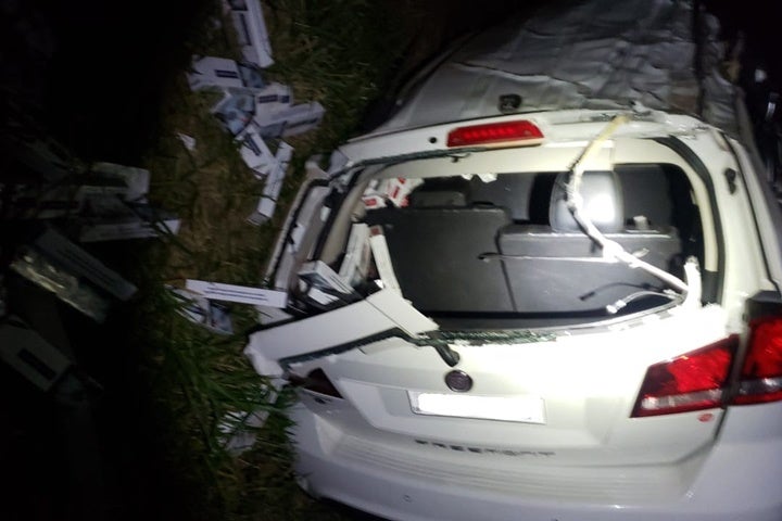 Pensando inicialmente se tratar de um acidente comum, s policiais isolaram a rodovia para evitar acidentes e na sequência verificaram que o automóvel estava abandonado e carregado com vários cigarros contrabandeados do Paraguai.