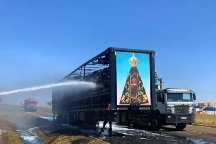 Entretanto, o que mais chama a atenção para o caso é que um painel de Nossa Senhora Aparecida – localizado na traseira do veículo – permaneceu completamente intacto após o incêndio.