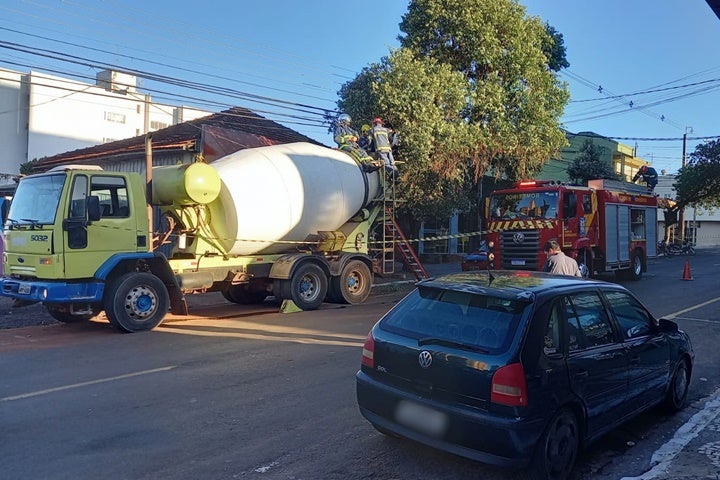 Urgente: Corpo de Bombeiros atende vítima que ficou presa dentro de betoneira, em Umuarama