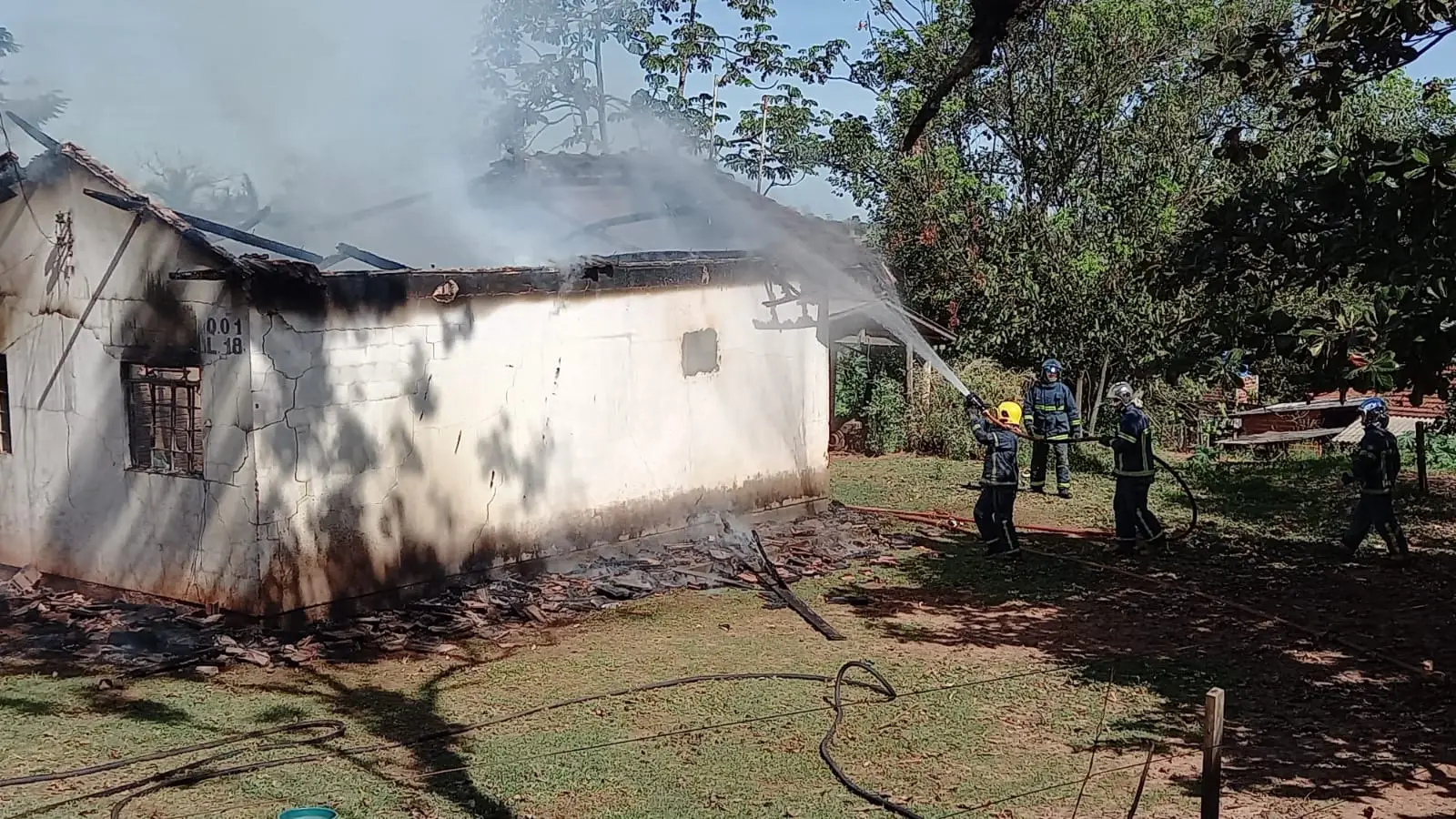 As informações preliminares são de que não há vítimas. A casa está localizada na Vila Rural São Carlos, perto do distrito de Lovat.