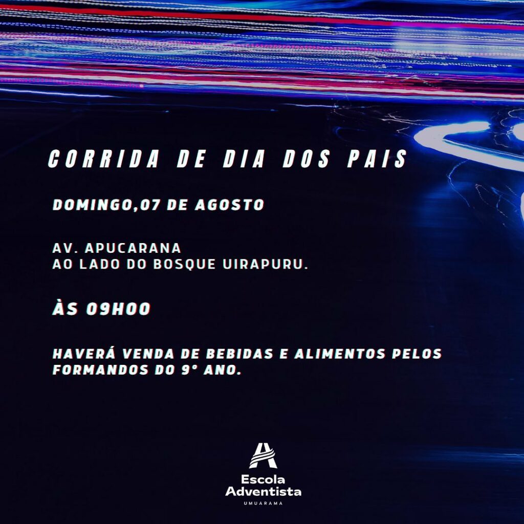 Para comemorar o Dia dos Pais, a Escola Adventista de Umuarama realizará um evento super querido, o Rolimã Race. Trata-se de um momento de união entre pais e filhos em uma descida de carrinho de rolimã para avenida Apucarana, ao lado do Bosque Uirapuru.