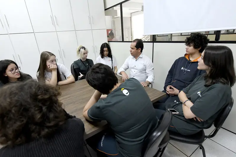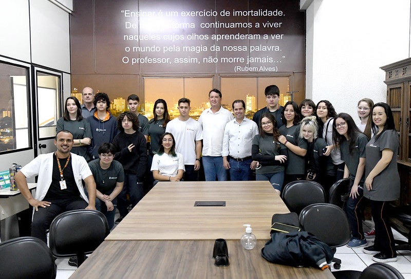 Um grupo de alunos do primeiro ano do Ensino Médio do Colégio Educare esteve com o prefeito Hermes Pimentel e o secretário municipal da Indústria e Comércio, Marcelo Adriano Lopes da Silva, na manhã desta quinta-feira (4).