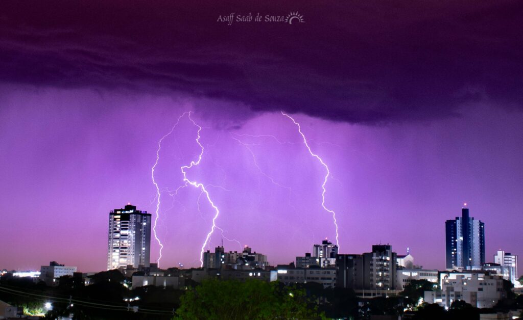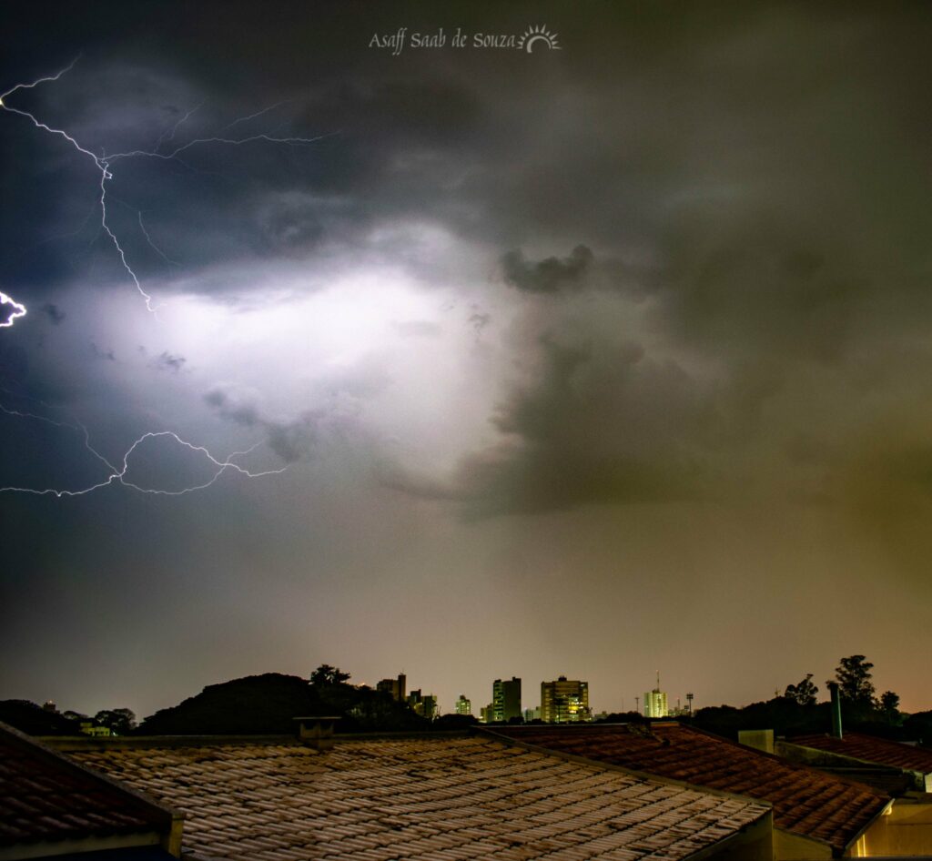 O fotógrafo Asaff Saab de Souza registrou imagens ‘eletrizantes’ dos raios. “O começo de noite foi tenso, vários raios na cidade, consegui capturar alguns”, postou em suas redes sociais.