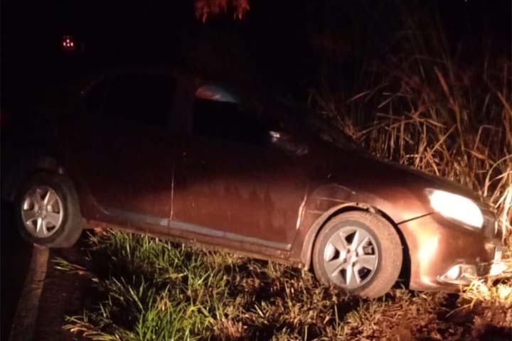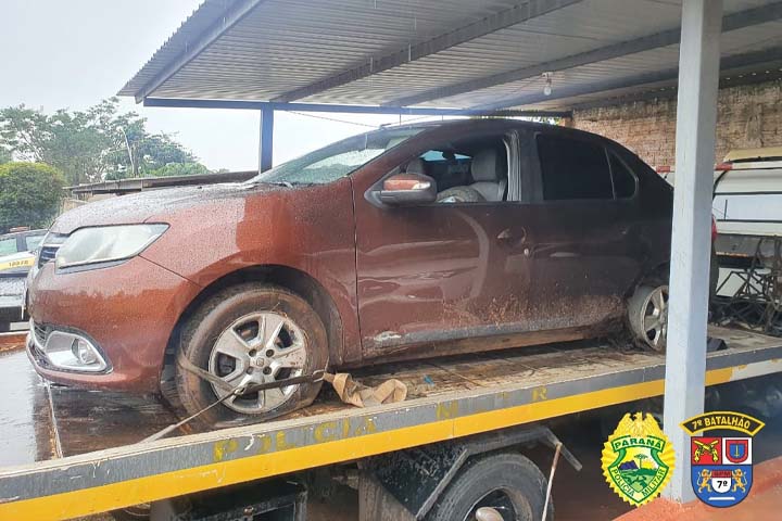A Patrulha Rural de Cruzeiro do Oeste estava trafegando na margem da rodovia PR-180 quando os policiais viram um veículo em estado de abandono, com os faróis acessos.