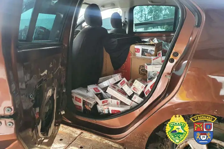 Um veículo carregado com cigarros contrabandeados foi apreendido em Cruzeiro do Oeste na madrugada desta terça-feira (9) após ter sido alvo de Piratas do Asfalto. A apreensão foi realizada pela Polícia Militar (PM) do Paraná, através de equipe do 7º Batalhão (BPM).