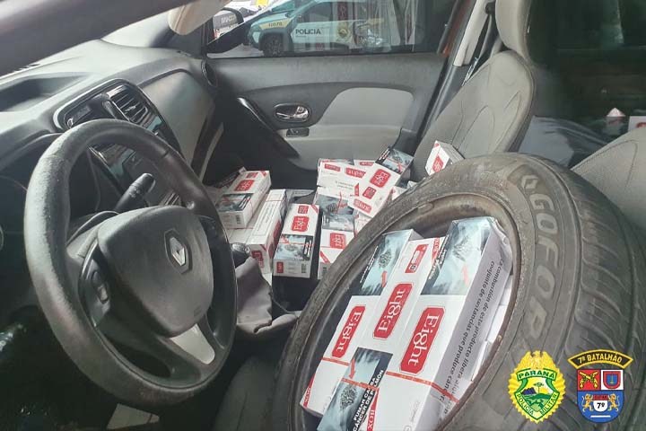 Diante dos fatos, o veículo e os pacotes de cigarros foram encaminhados para os procedimentos cabíveis.