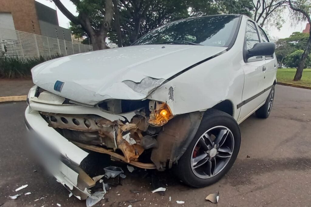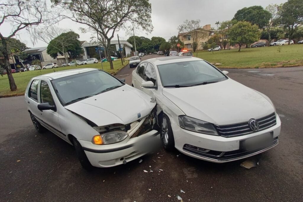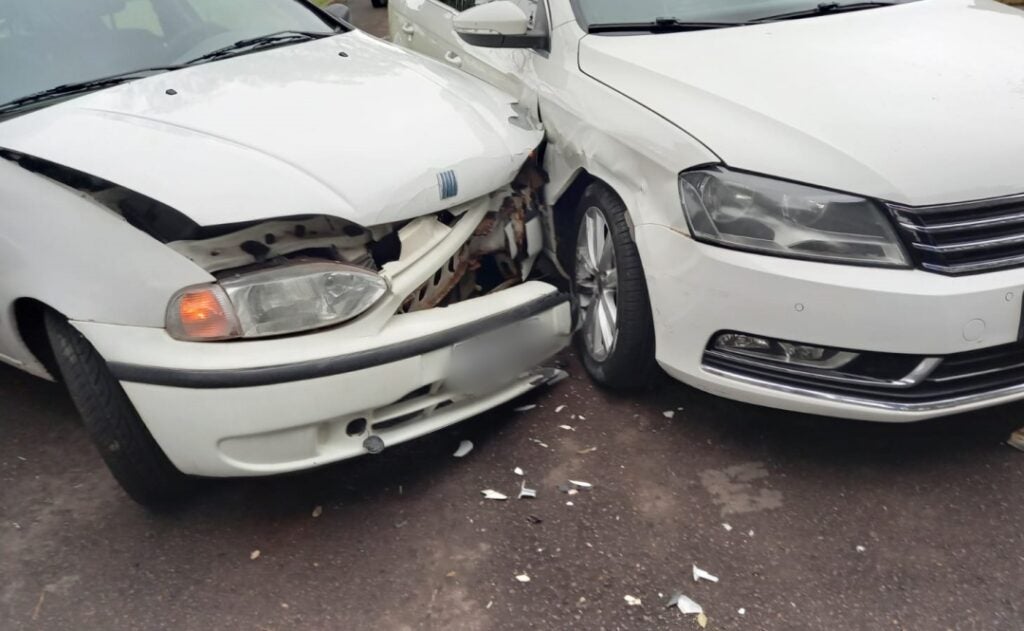 Uma colisão entre dois carros foi registrada por volta das 16h desta terça-feira (9) no cruzamento da Praça Oscar Thompson Filho com a rua Generino Delfino Coelho, perto do Hospital Cemil.