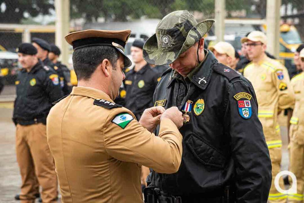 O 2º tenente Guilherme Brito Schneider, do Batalhão de Polícia Ambiental foi agraciado com a Medalha Heróis da Serra dos Dourados, destinada a homenagear militares, civis e entidades públicas ou privadas pelos relevantes serviços prestados a unidade da PMPR.
