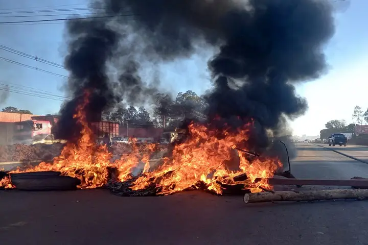 Manifestantes colocam fogo na PR-323 em Umuarama e interrompem o tráfego