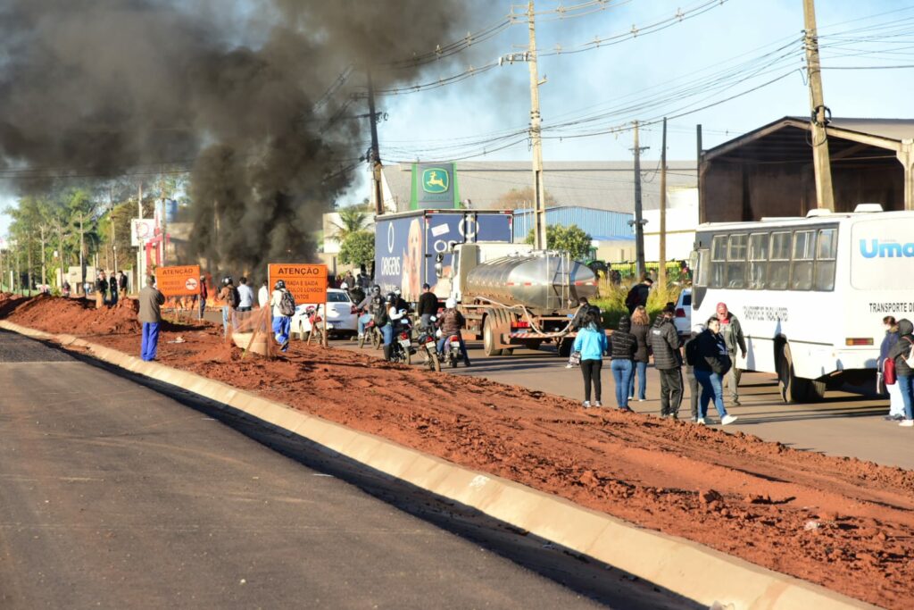 Moradores do Jardim Viena protestam na PR-323 pedindo melhorias no acesso ao bairro