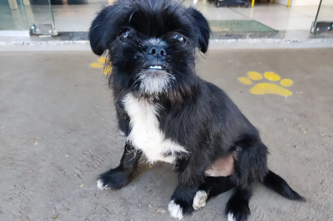 Trata-se de uma fêmea, de cor preta com manchas brancas na barriga, pequeno porte, aparentemente bem cuidada – pois encontra-se com peso normal e sem carrapatos – e que não parece ser de rua.