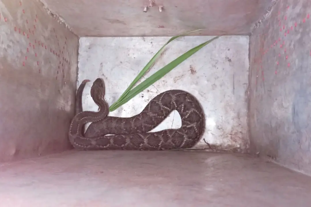 Uma cobra cascavel foi capturada em um terreno baldio no Jardim Aeroporto 3, em Umuarama. A captura foi feita pelo Corpo de Bombeiros na tarde desta sexta-feira (12).