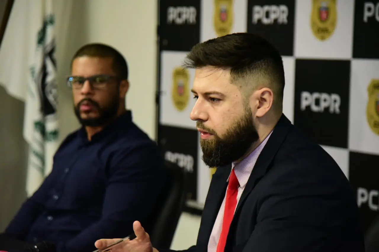 Os delegados Adailton Ribeiro Junior e Gabriel Menezes, na entrevista aos jornalistas (FOTO: DANILO MARTINS/OBEMDITO)