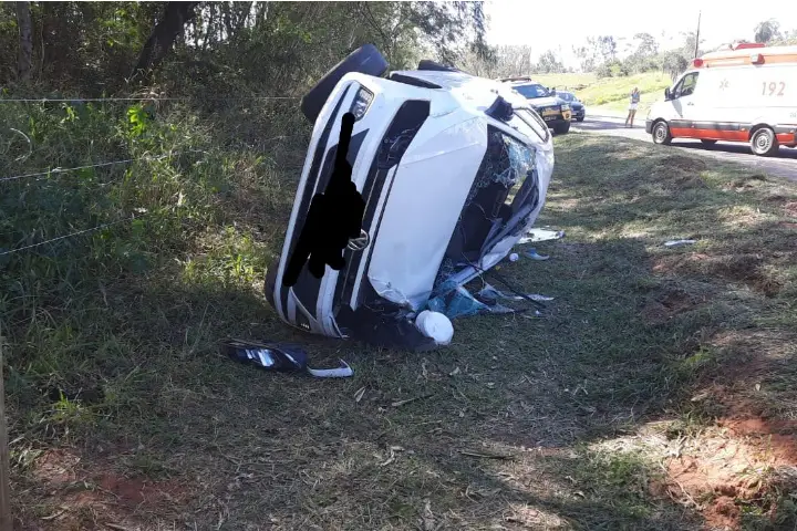 Motorista com as iniciais R.S.: 40 anos, a passageira J.C.G.S., 36 anos, além de outras duas passageiras menores de 9 e 15 anos tiveram ferimentos de gravidade média no acidente registrado por volta das 13h40, no Trevo de Alto Piquiri, na PR 486, km 113.