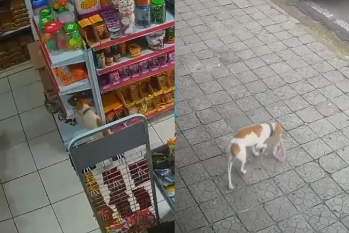 No vídeo – disponível abaixo – é possível ver o cachorrinho andando pelo estabelecimento, procurando o petisco que melhor lhe agrada. Após encontrar, o “gatuno” sai com o pacote para fora da loja, sem nem ao menos considerar pagar pelo produto adquirido.