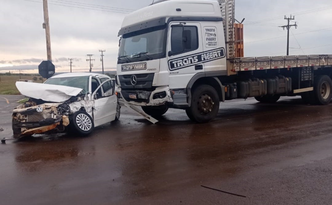 As equipes da Polícia Rodoviária Estadual (PRE) de Assis Chateaubriand e Ubiratã atenderam a ocorrência. De acordo com a PRE, no momento do acidente (por volta das 15h30) o tempo estava chuvoso. Os veículos envolvidos são um caminhão M.Benz/Atego 2426 e um automóvel Voyage.