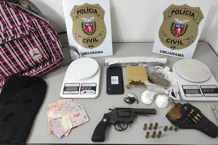 A Polícia Civil de Umuarama cumpriu um mandado de busca e apreensão na manhã desta quarta-feira (17) e prendeu um homem por posse ilegal de arma de fogo e tráfico de drogas. A ordem judicial foi cumprida no bairro Jardim das Paineiras.