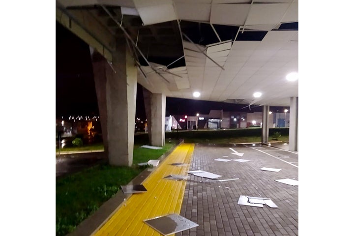 Populares registraram os estragos em vídeo – assista abaixo – onde é possível ver que várias placas da cobertura que revestem o teto da instalação não resistiram à tempestade e acabaram sendo arrancadas pelo vento.