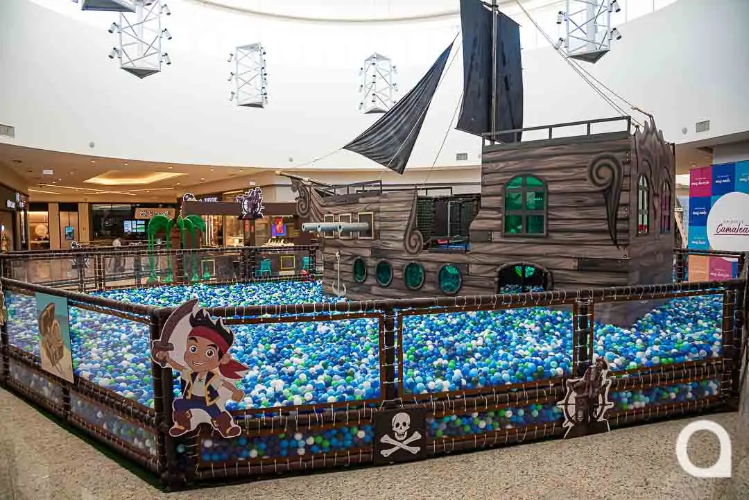 Na atração, além de centenas de milhares de bolinhas, os participantes poderão desbravar um labirinto dentro do navio pirata, que possui escorregador e cai diretamente nas bolinhas, além do playground.