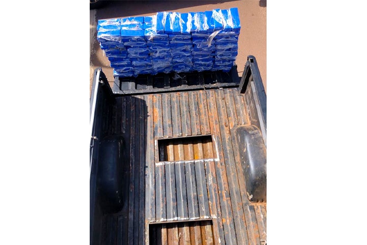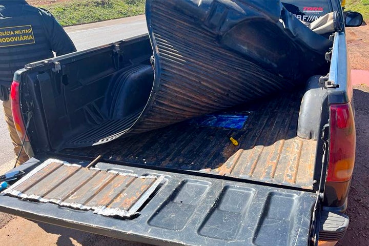 Os patrulheiros fizeram uma busca minuciosa na caminhonete. Ao ser retirado o protetor de caçamba foi encontrado um fundo falso na carroceria. Dentro do fundo falso havia 260 tabletes de maconha, que totalizaram 182,950 quilos.