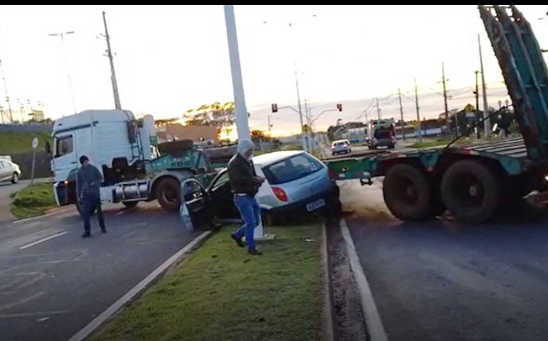Um acidente envolvendo uma carreta e um Celta foi registrado na manhã deste sábado (20) em Umuarama. Os dois veículos foram parar no canteiro da avenida Portugal, perto do Atacadão, cerca de 200 metros antes do semáforo saída para Maria Helena.