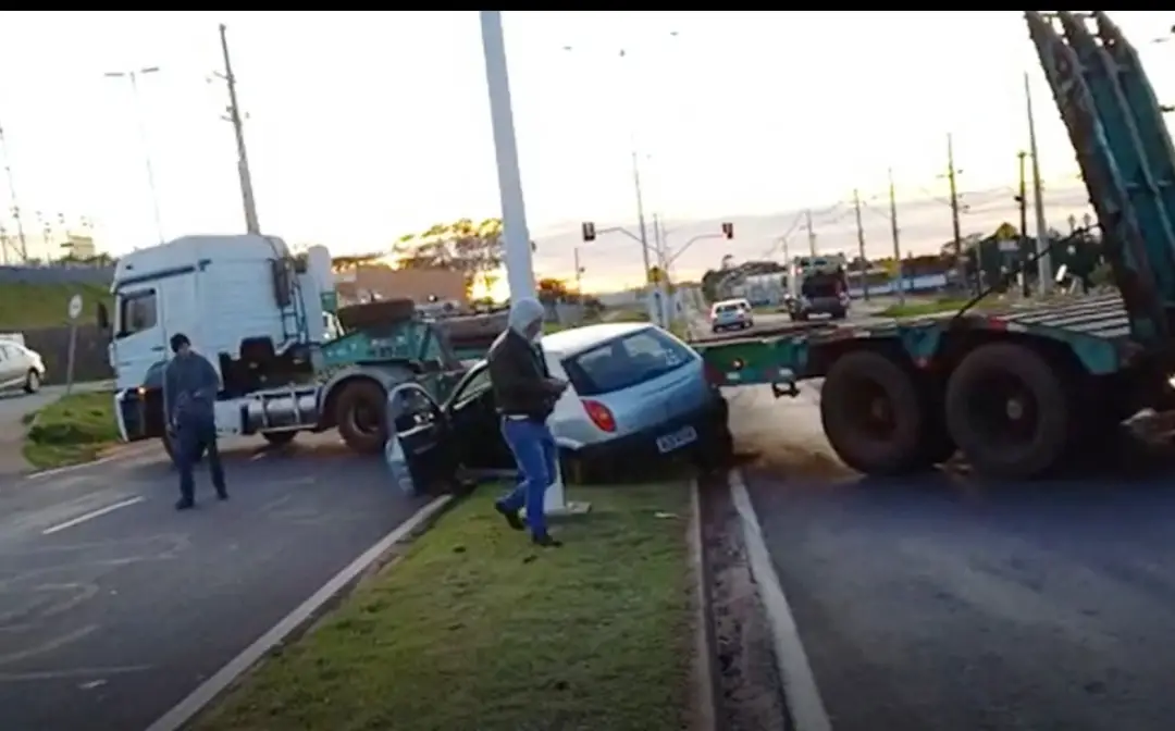 O Celta foi guinchado e, a princípio, a carreta saiu rodando do local.