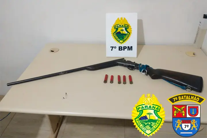Com a chegada das equipes policiais, o suspeito fugiu do local, não sendo mais localizado pelos policiais. Dentro da casa as equipes encontraram a espingarda calibre .32, com 4 cartuchos intactos e 1 deflagrado.